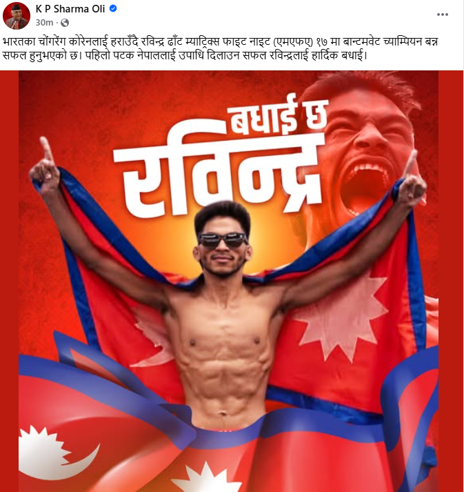 पहिलो पटक नेपाललाई उपाधि दिलाउन सफल रवीन्द्र ढाँटलाइ प्रधानमन्त्रीले दिए बधाई