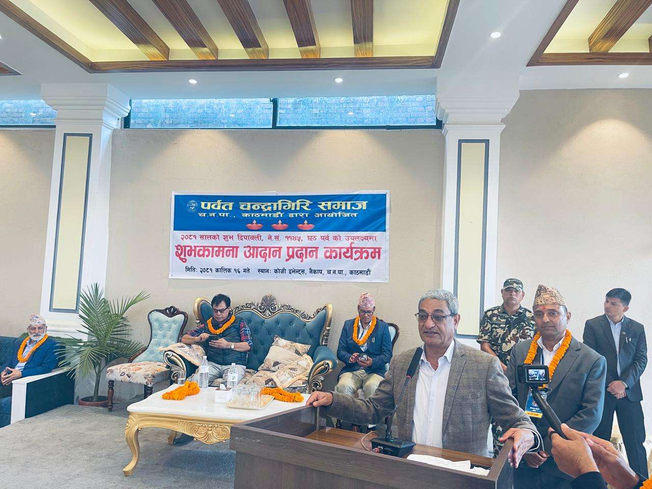 शुक्रबार दिउँसो पर्वत चन्द्रागिरि समाजद्वारा दिपावली, नेपाल सम्मत र छठ पर्वको अवसरमा आयोजित शुभकामना आदानप्रदान कार्यक्रममा उहाँले यस्तो बताएका हुन् ।