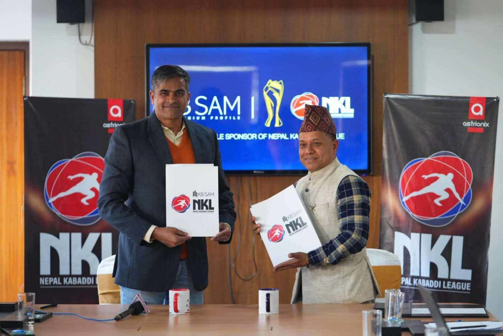 नेपाली कबड्डीमा हालसम्मकै सबभन्दा ठूलो प्रतियोगिताको रुपमा केबी साम एनकेएलको पहिलो संस्करण दशरथ रंगशालास्थित कभर्डहलमा शुक्रबार सुरु हुँदैछ, जहाँ ६ सहरका ६ वटा टिमले राउन्ड रोकिन लिग र नकआउट चरण गरी माघ १८ गतेसम्म प्रतिस्पर्धा गर्नेछन् । यसै प्रतियोगिताको टाइटलस स्पोन्सरको सम्झौता एक कार्यक्रमवीच वुधबार भयो ।