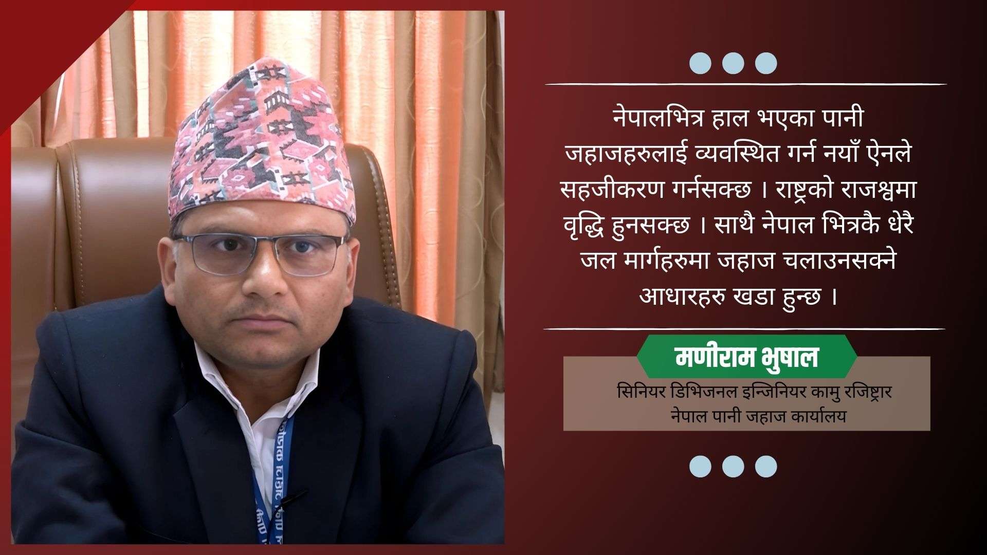 पानी जहाजको सञ्चालन थप व्यवस्थापन सम्बन्धि कानुनलाई संशोधन र एकीकरण गर्न बनेको विधेयक २०८१ राष्ट्रिय सभाबाट सैद्धान्तिक छलफलबाट पास भएर दफावार छलफलमा जाँदैछ । यसले उत्साहित बनाएको छ । हुनत पानीजहाज सम्बन्धि ऐन २०२७ सालमा नै आएको थियो । कानुनी व्यवस्थाहरु पनि थिए तर त्यो अपुग थियो । त्यही भएर अहिले नयाँ सञ्चालन तथा व्यवस्थापन सम्बन्धी संशोधन गर्न बनेको विधेयक आएको हो । अब राष्ट्रिय सभाबाट पास पारित भएपछि ऐन बन्छ र पानी जहाज थप सहजका साथ संचालनका लागि काम गर्ने बाटो खुल्नेछ ।