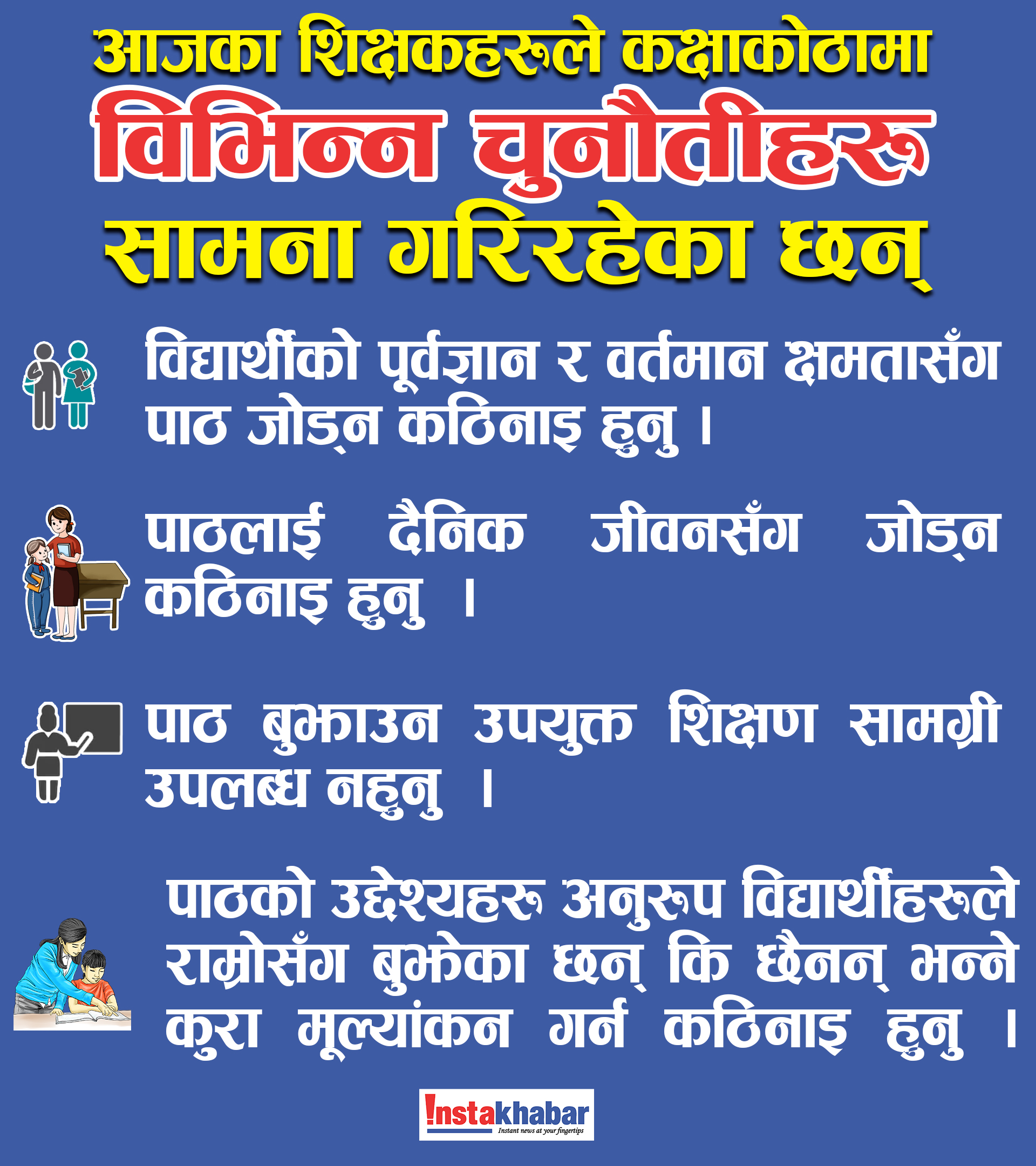 यी कारणहरूले गर्दा, शिक्षण सिकाईमा अपेक्षा अनुसार सुधार भैरहेको छैन ।