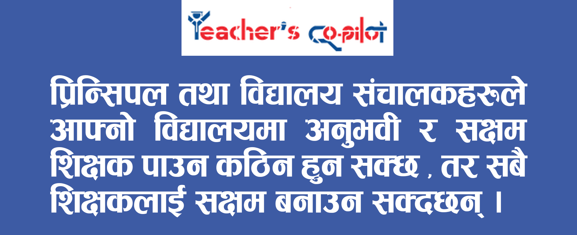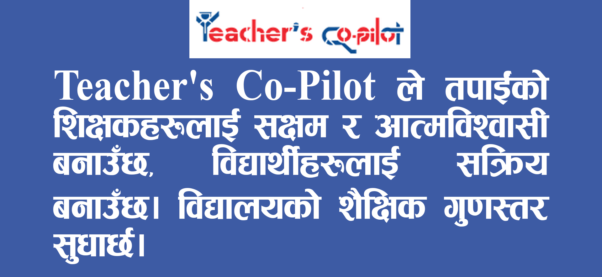“टिचरस् को-पाइलट” एउटा यस्तो आदर्श शिक्षण सहायक हो जसले शिक्षकलाई कक्षा आत्मविश्वासका साथ सञ्चालन गर्न मद्दत गर्छ, मार्गदर्शन गर्छ र क्लास रुमलाई जीवन्त सिकाइको थलो बनाउँछ ।