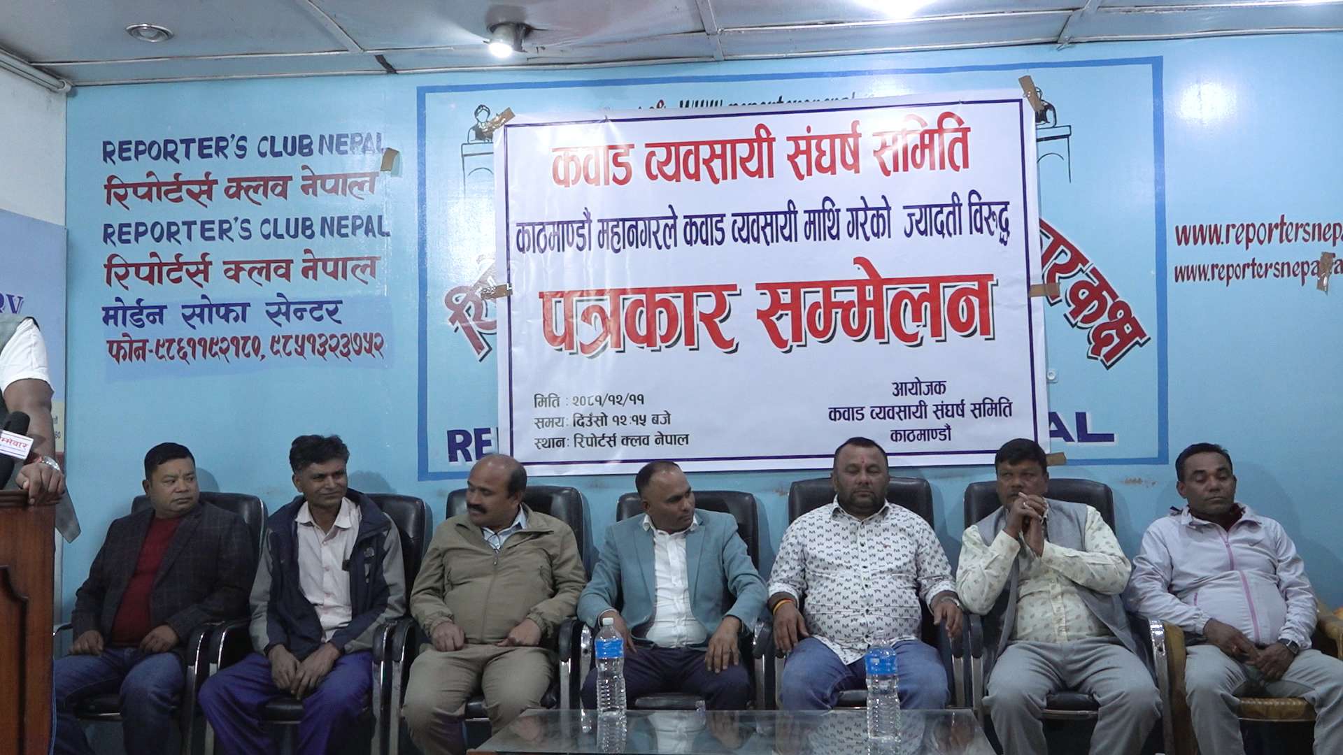 सोमबार काठमाडौंमा आयोजित पत्रकार सम्मेलन गर्दै कवाड व्यवसायी समाजले महानगरले गरिरहेको ज्यादती तत्काल रोकेर सहज ढंगले व्यवसाय गर्ने वातावरण निर्माण गरिदिन आग्रह गर्दै नरोकिए थप संघर्षका कदमहरु अगाडि बढाउने चेतावनी दिएका हुन् ।