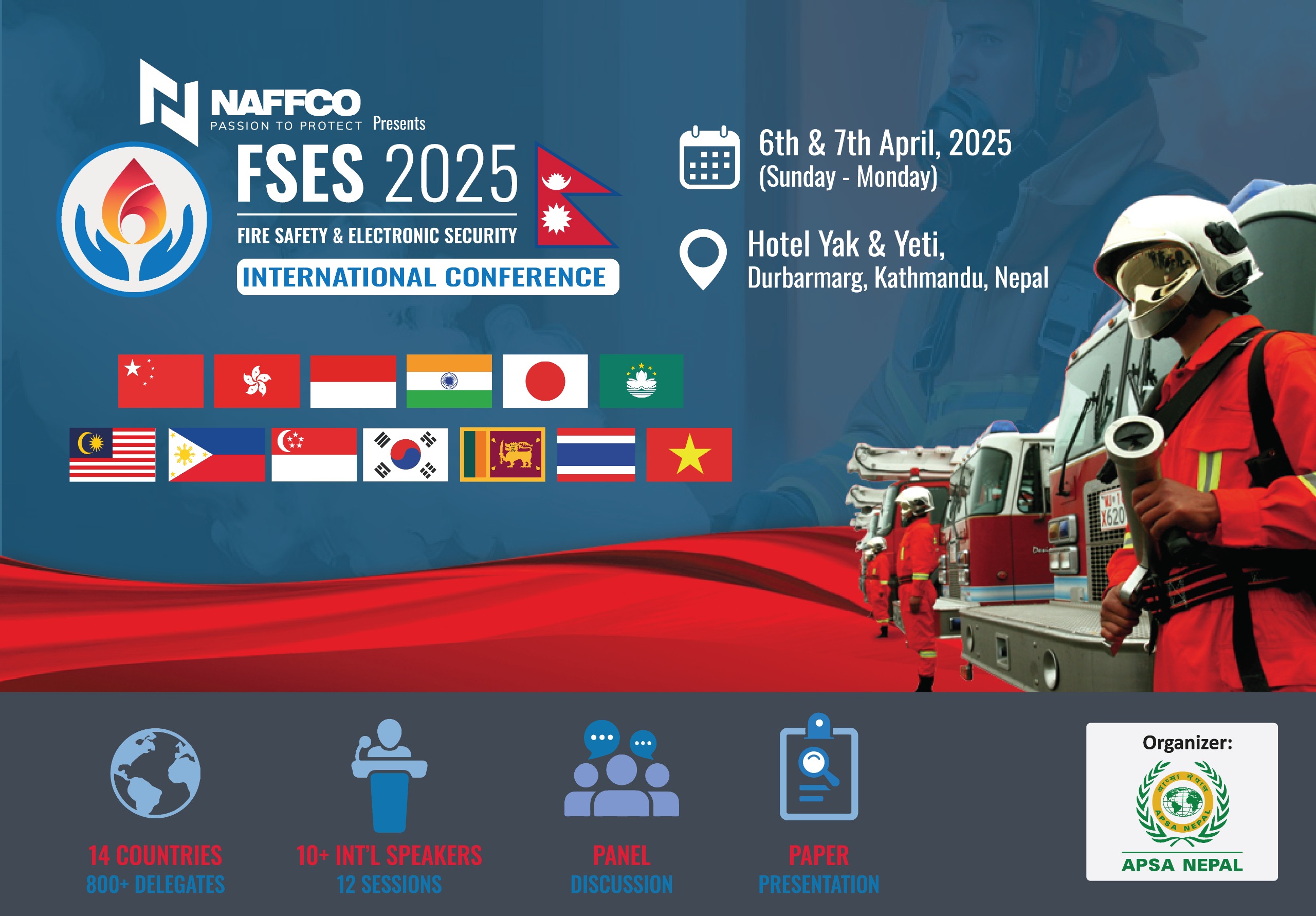 आप्सा नेपालका अध्यक्ष सुनिल कुमारका अनुसार सम्मेलनको उद्धघाटन परराष्ट्रमन्त्री डा। आरजु राणा देउवाले गर्ने छिन् भने गृह मन्त्रालय, सहरी विकास मन्त्रालय, नेपाल प्रहरी, सशस्त्र प्रहरी बल, नेपाली सेना, ७५३ वटै स्थानीय तहका प्रतिनिधिहरू, उद्योग क्षेत्रका अग्रणी व्यक्तित्वहरू तथा आगलागी र विद्युतीय सुरक्षाका विज्ञहरूको सक्रिय सहभागिता रहनेछ। सम्मेलनमा आगलागी न्यूनीकरण तथा विद्युतीय सुरक्षाका क्षेत्रमा विश्वभर भइरहेको नवीनतम प्रविधि, प्रवृत्ति र उत्कृष्ट अभ्यासहरू प्रस्तुत गरिनेछ।