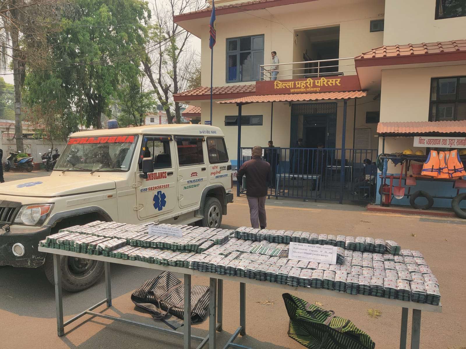 शनिबार वीरगञ्जबाट काठमाडौं आउदै गरेको बीआर०५पीआर०४२१ नम्बरको भारतीय एम्बुलेन्समा ९४ हजार ८० थान क्याप्सुलसहित तीन थान मोबाइल बरामद गरिएको हो ।