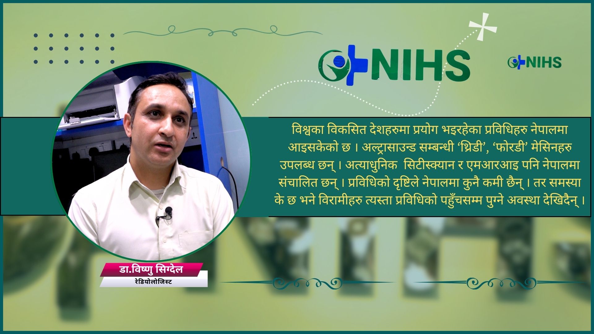 विश्वका विकसित देशहरुमा प्रयोग भइरहेका प्रविधिहरु नेपालमा आइसकेको छ । अल्ट्रासाउन्ड सम्बन्धी ‘थ्रिडी’, ‘फोरडी’ मेसिनहरु उपलब्ध छन् । अत्याधुनिक सिटीस्क्यान र एमआरआइ पनि नेपालमा संचालित छन् । प्रविधिको दृष्टिले नेपालमा कुनै कमी छैन् । तर समस्या के छ भने विरामीहरु त्यस्ता प्रविधिको पहुँचसम्म पुग्ने अवस्था देखिदैन् ।