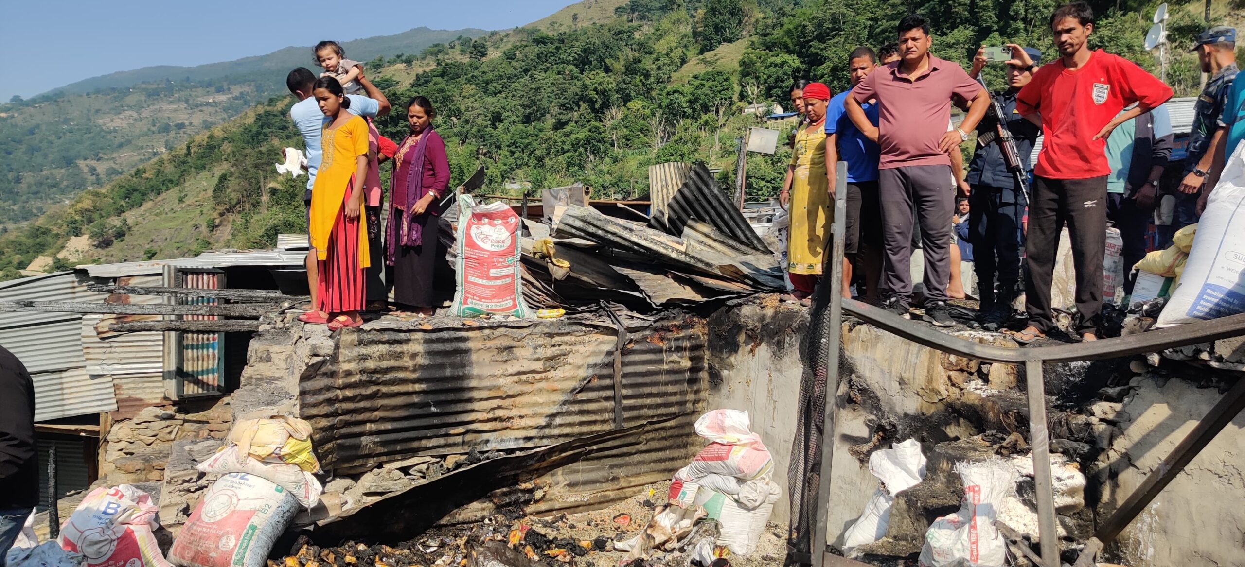 मन्त्री पाण्डेले गरे आगलागीबाट नष्ट बाम्का बजार क्षेत्रको निरीक्षण