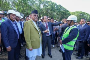काठमाडौं । प्रधानमन्त्री केपी शर्मा ओलीले कीर्तिपुरस्थित क्रिकेट मैदानमा निर्माणाधीन अन्तर्राष्ट्रियस्तरको प्याराफिट र फ्लडलाइट जडान कार्यको स्थलगत निरीक्षण गरेका छन् ।