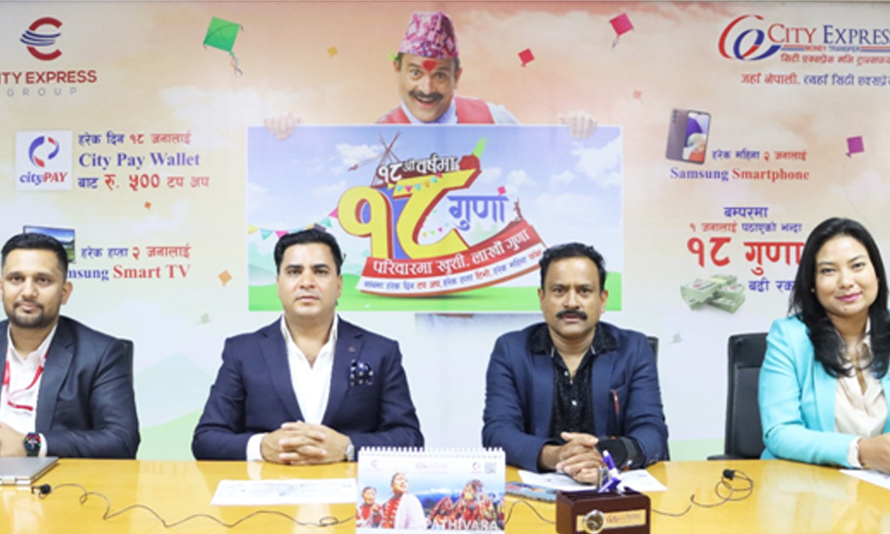 काठमाडौं । सिटी एक्सप्रेस मनी ट्रान्सफरले समस्त नेपालीहरुको महान चाड २०७९ सालको दशैँ, तिहार र छठ्लाई लक्षित गर्दै आफ्ना ग्राहकवर्गहरुसंग पर्वको खुशी साट्न लगातार ६३ दिन सम्म चल्ने ‘बिदेशबाट सिटी आयो , दशैं तिहारलाई गोल्डेन बनायो’ उपहार योजना घोषणा गरेको छ ।