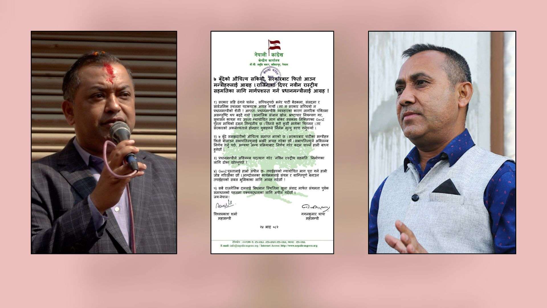 नेपाली कांग्रेसका महामन्त्रीद्वय गगन थापा र विश्वप्रकाश शर्माले पार्टीबाट सरकारमा गएका मन्त्रीहरुलाई फिर्ता हुन निर्देशन दिएका छन् ।