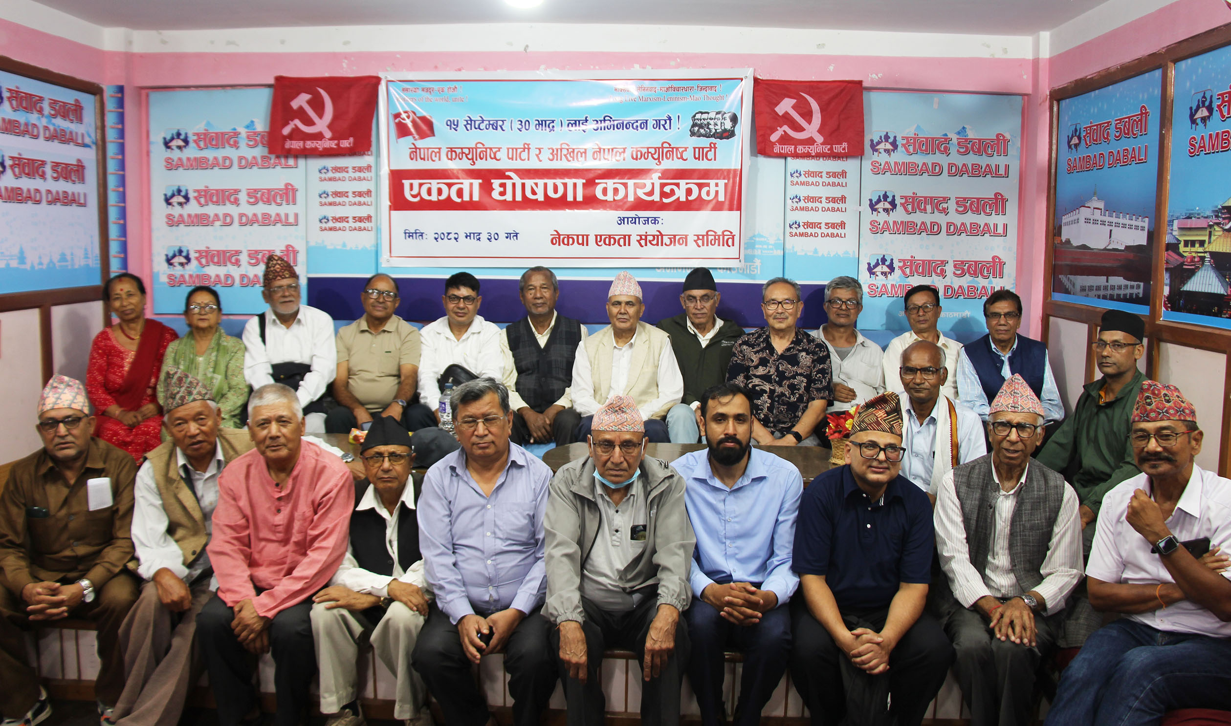 काठमाडौं । दुई कम्युनिस्ट पार्टीबीच एकता भएको छ । लोकनारायण सुवेदीले नेतृत्व गरेको नेपाल कम्युनिस्ट पार्टी र नारायणप्रसाद शर्माले नेतृत्व गरेको अखिल नेपाल कम्युनिस्ट पार्टीबीच एकता घोषणा गरिएको छ ।