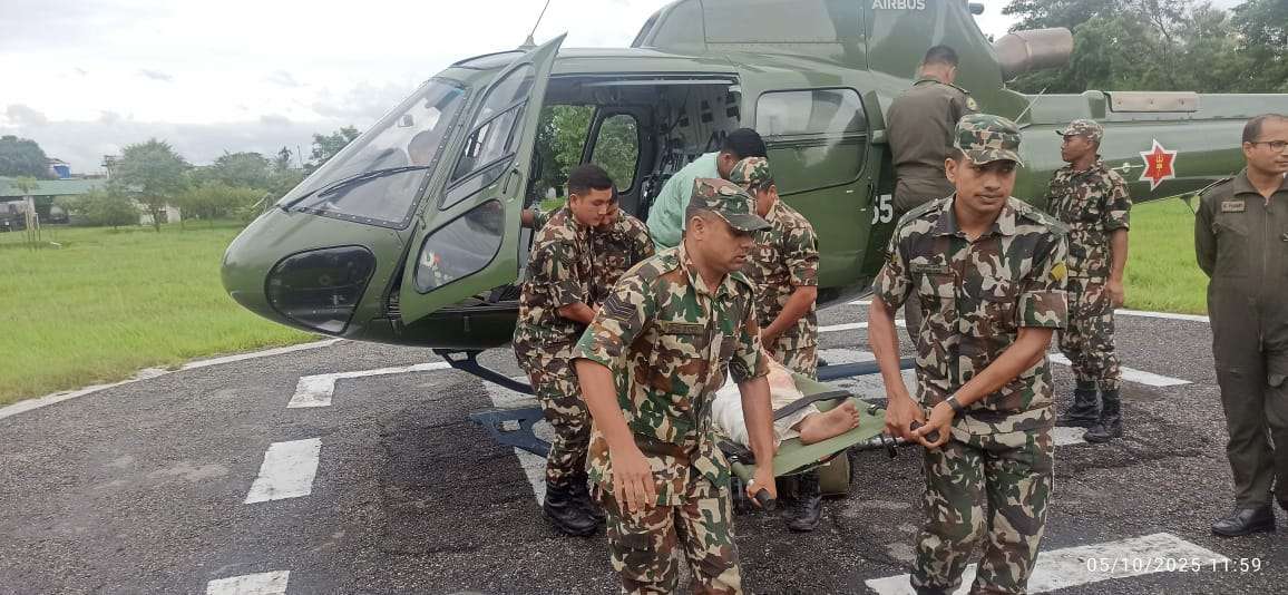 सेनाले माङसेबुङ–१ पातीगाउँबाट गम्भिर घाइते दुई जना (पुरुष एक र गर्भवती महिला एक) लाई नेपाली सेनाको हेलिकप्टरद्वारा उद्धार गरी थप उपचारको लागि धरान एवम इटहरी लगेको थियो ।