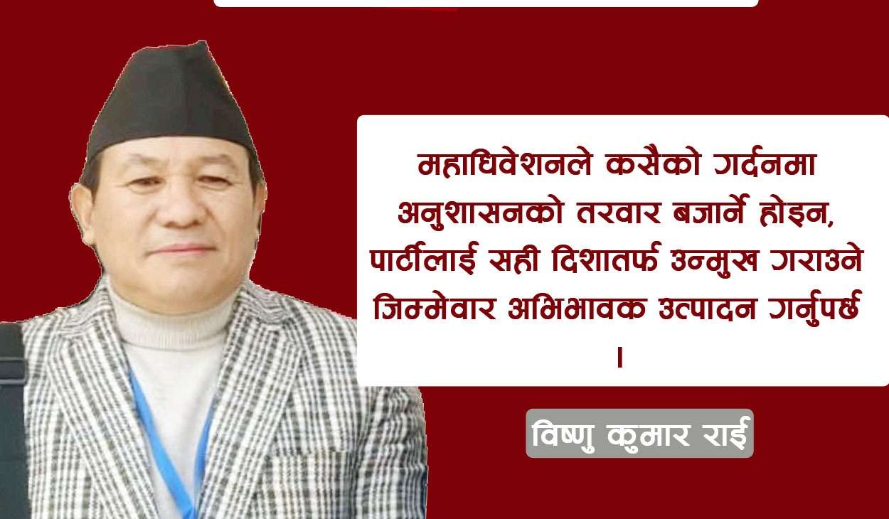 नेता राईले महाधिवेशनलाई केवल पद बाँडफाँडको अभ्यास नभई नयाँ राजनीतिक दिशा तय गर्ने ऐतिहासिक अवसरको रूपमा लिनुपर्ने बताएका छन् ।
