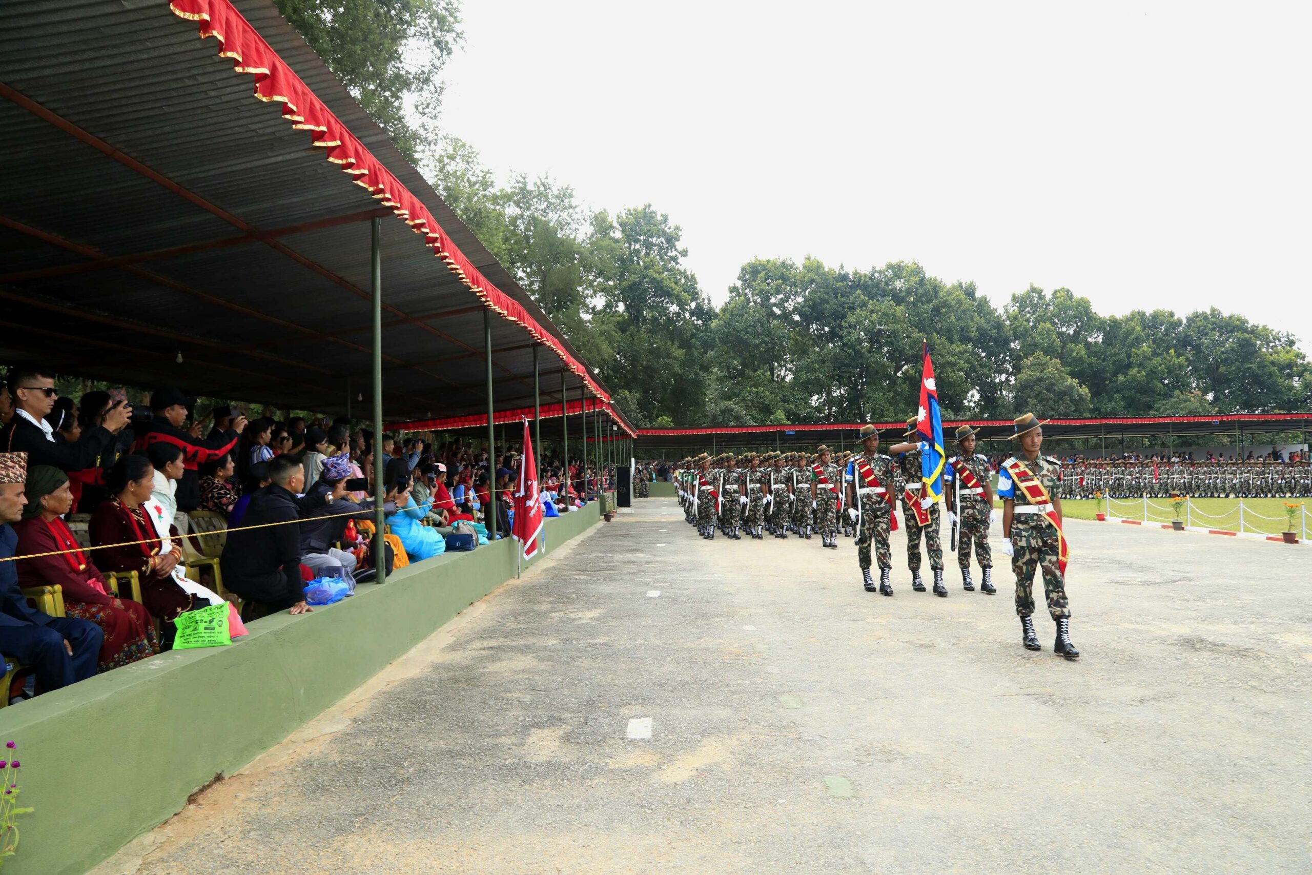 नेपाली सेनाका तालिम केन्द्रसहित विभिन्न १९ स्थानहरूमा सञ्चालित नौं महिना अवधिको सैन्य आधार तालिम सम्पन्न गरी २,१०२ जना पुरुष तथा ३४९ जना महिला गरी कुल २,४५१ जना सैन्यहरू दीक्षित भएका छन् ।