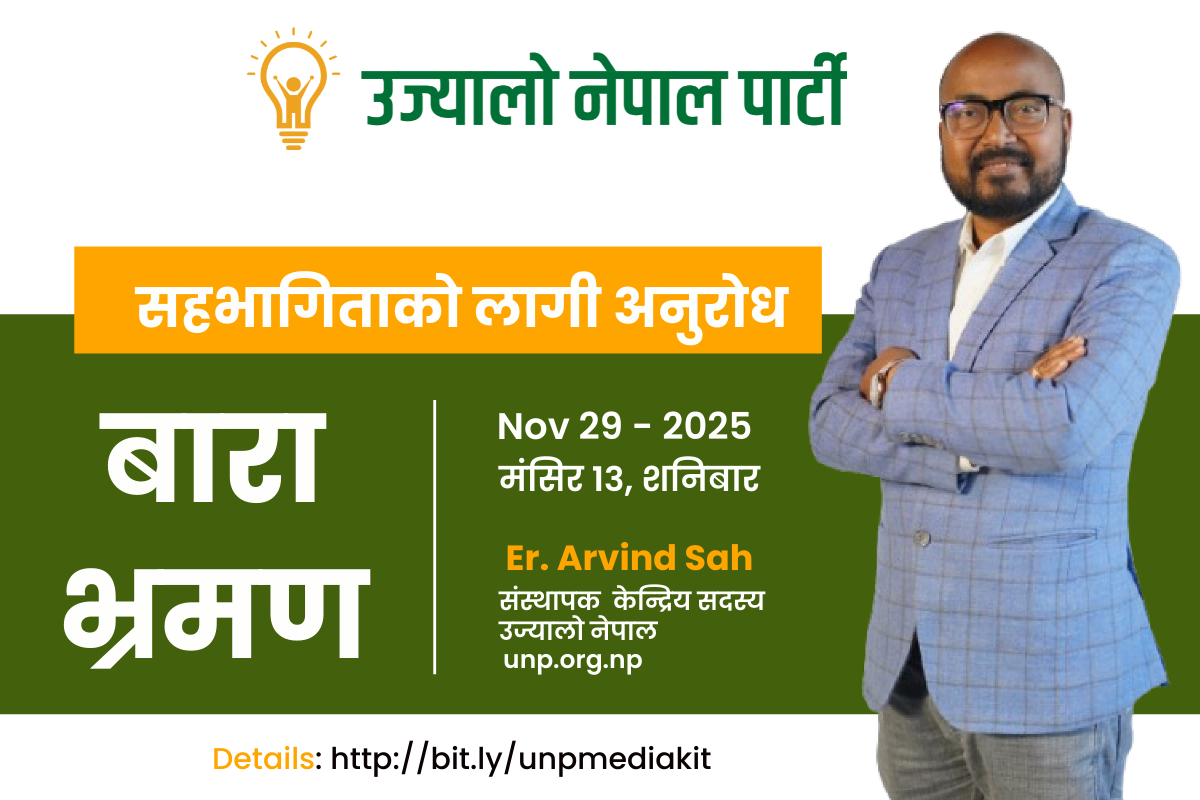 ऊर्जा मन्त्री कुलमान घिसिङका सारथी तथा खल्ती एपका संस्थापक निर्देशक इन्जिनियर अरविन्द साह मंसिर १३ गते शनिबार आफ्नो गृह जिल्ला बारा आउँदै छन्। उज्यालो नेपाल पार्टीका संस्थापक केन्द्रिय सदस्य समेत रहेका साहको पछिल्लो राजनीतिक सक्रियता बारा–२ क्षेत्रमा नयाँ चर्चा र उत्साहको विषय बनेको छ।