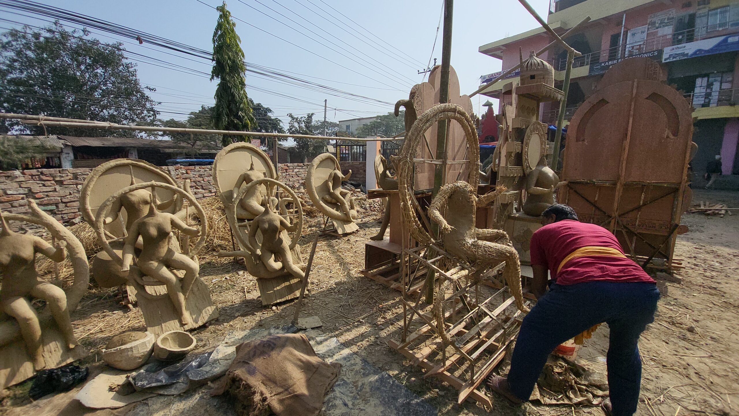 सरस्वती पूजा नजिकिँदा मूर्तिकारलाई भ्याईनभ्याई, मौसमले थप्यो चुनौति