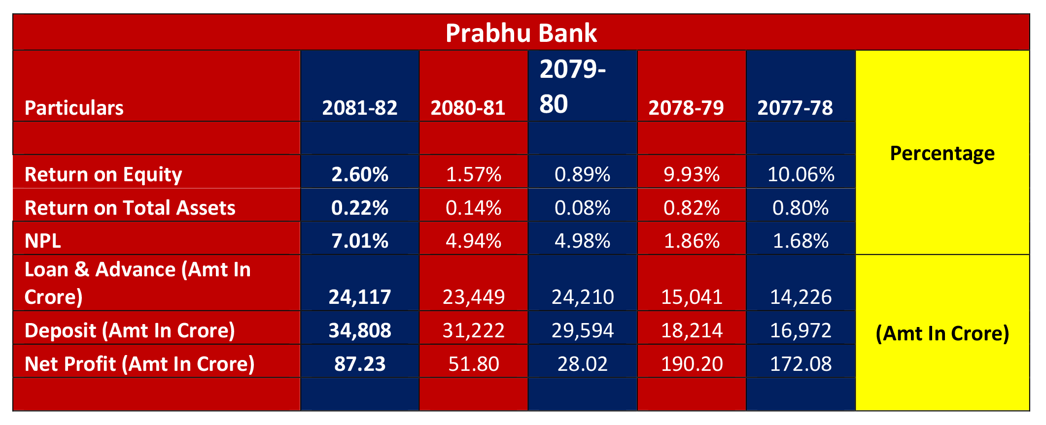 ROA (Return on Assets): सम्पत्तिमा हुने प्रतिफल पनि ०.८०% बाट ०.२२% मा झरेको छ, जसले बैंकले आफ्नो पूँजी र सम्पत्तिको सही परिचालन गर्न नसकेको देखाउँछ।