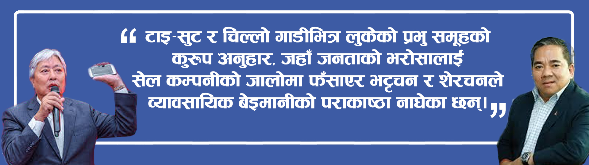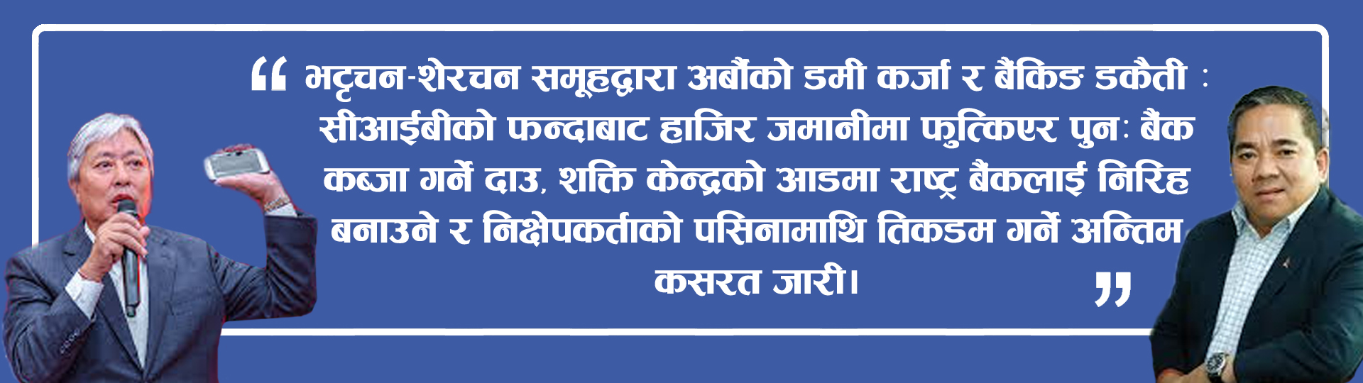 “प्रभु बैंक अब बैंक रहेन, यो त देवीप्रकाश भट्टचन र अशोक शेरचनको व्यावसायिक बेइमानी लुकाउने ‘सेफ हाउस’ बनेको छ। आफ्ना मतियारहरूको एउटा विशाल दस्ता खडा गरेर, प्रवर्द्धक कर्जा (Promoter Lending) र क्रस-होल्डिङको जालमार्फत बैंकको अर्बौँ रकम शेयर बजार, हाइड्रो र ‘सेल’ कम्पनीहरूमा अवैध रूपमा खन्याइएको छ। जनताको रगत-पसिनाको पैसालाई ‘मनी लाउन्ड्रिङ’ गर्ने सुरक्षित माध्यम बनाएर यो जोडीले नेपालको बैंकिङ इतिहासमै सबैभन्दा ठूलो वित्तीय अपराध र संस्थागत लुटको नमुना प्रस्तुत गरेको छ।