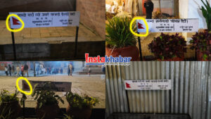 ३. काठमाडौँ महानगरपालिका: ‘हनुमानढोका दरबार क्षेत्र कार्यक्रम’ मार्फत करोडौँको बजेट खर्च गर्ने महानगरले साइनबोर्डमा झण्डाको सही चित्र कोर्न एउटा दक्ष कलाकार वा गुणस्तर जाँच गर्ने कर्मचारी समेत पाएन?