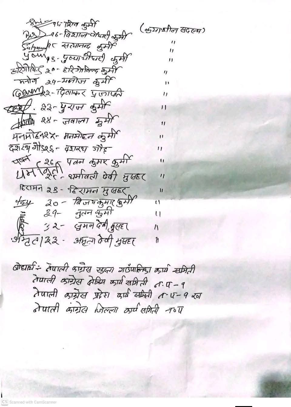 राजीनामा दिनेहरूमा क्षेत्रीय प्रतिनिधि तथा पूर्व जिल्ला समन्वय समिति सदस्य कृष्णबहादुर थापा मगर, श्रीनिवास कुर्मी, सतिष चन्द्र कुर्मी, संजित कुर्मी लगायत तीन दर्जन नेता कार्यकर्ता रहेका छन् ।