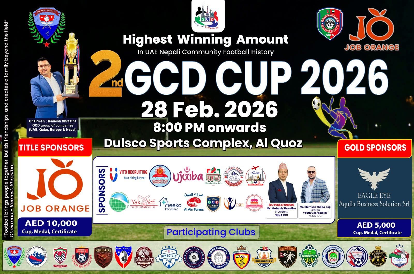 जीसीडी ग्रुप यूएई, नेपाल, कतार, युरोपलगायत एक दर्जनभन्दा बढी देशमा शाखा विस्तार गरिसकेको बहुराष्ट्रिय व्यवसायिक सञ्जाल हो । प्रवासमा रहेका नेपालीहरूलाई व्यवसाय, रोजगारी र सामाजिक सञ्जालमार्फत जोड्ने उद्देश्यले समूहले विविध कार्यक्रम सञ्चालन गर्दै आएको छ । प्रतियोगितामा यूएईभरिका नेपाली क्लबहरूको सहभागिता रहने जनाइएको छ । आयोजकका अनुसार ‘स्वास्थ्यका लागि खेलकुद’ भन्ने नारासहित आपसी सद्भाव, अनुशासन र भाइचारालाई सुदृढ गर्ने लक्ष्य राखिएको छ ।