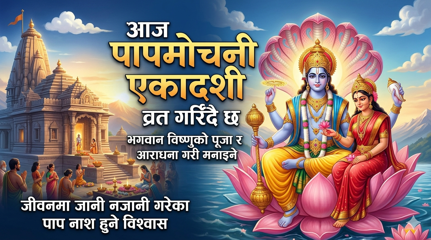 प्रत्येक वर्ष चैत्रकृष्ण एकादशीका दिन मनाइने पापमोचनी एकादशी व्रत आज भगवान् विष्णुको पूजा, आराधना गरी मनाउन लागिएको हो ।