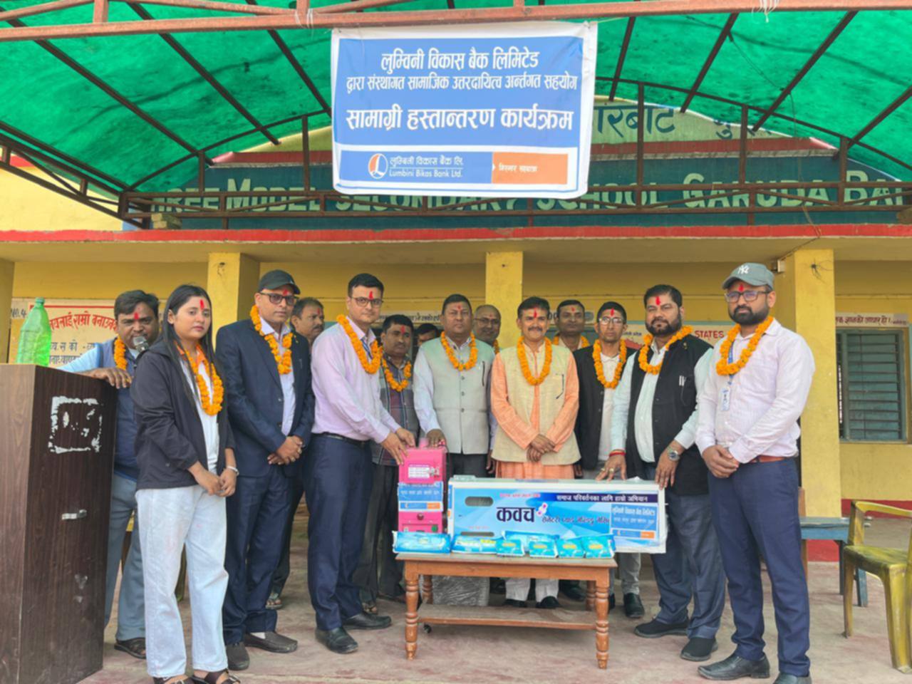 रौतहट । लुम्बिनी विकास बैंक लिमिटेडले आफ्नो संस्थागत सामाजिक उत्तरदायित्व अन्तर्गत रौतहटको गरुडा नगरपालिकास्थित नमुना माध्यमिक विद्यालयलाई स्वास्थ्य सामग्री सहयोग गरेको छ ।