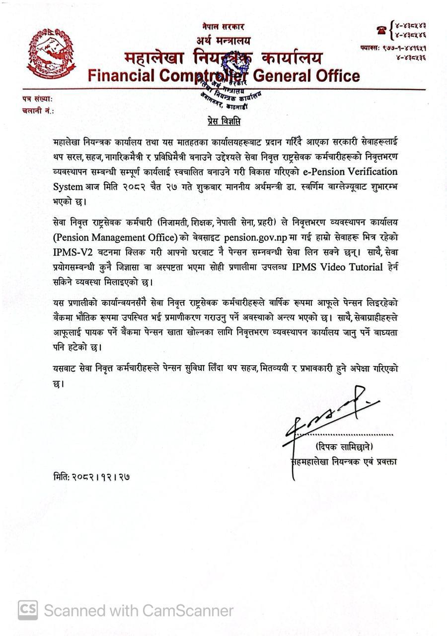 शुक्रबार अर्थ मन्त्रालयमा आयोजित कार्यक्रममा उनले महालेखा नियन्त्रकको कार्यालयद्वारा विकसित उक्त प्रणाली सञ्चालनमा ल्याएका हुन्।