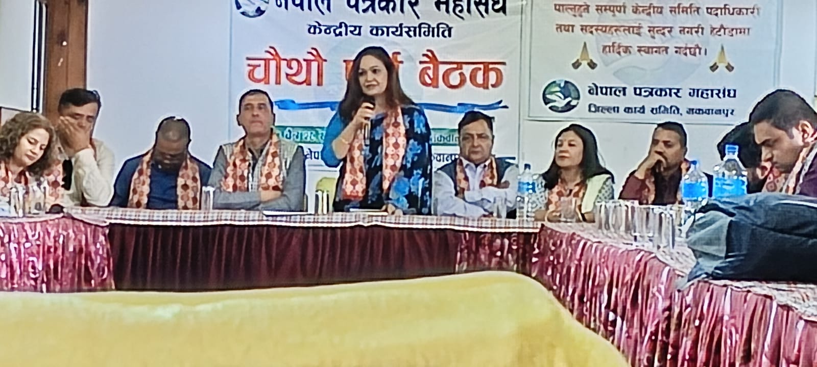 नेपाल पत्रकार महासंघको आइतबार हेटौँडामा सम्पन्न चौथो पूर्ण बैठकले प्रेस स्वतन्त्रता र अभिव्यक्ति स्वतन्त्रताको मुद्दामा महासंघ एक भएर अघि बढ्ने निर्णय गरेको महासंघकी अध्यक्ष निर्मला शर्माले जानकारी दिइन् ।
